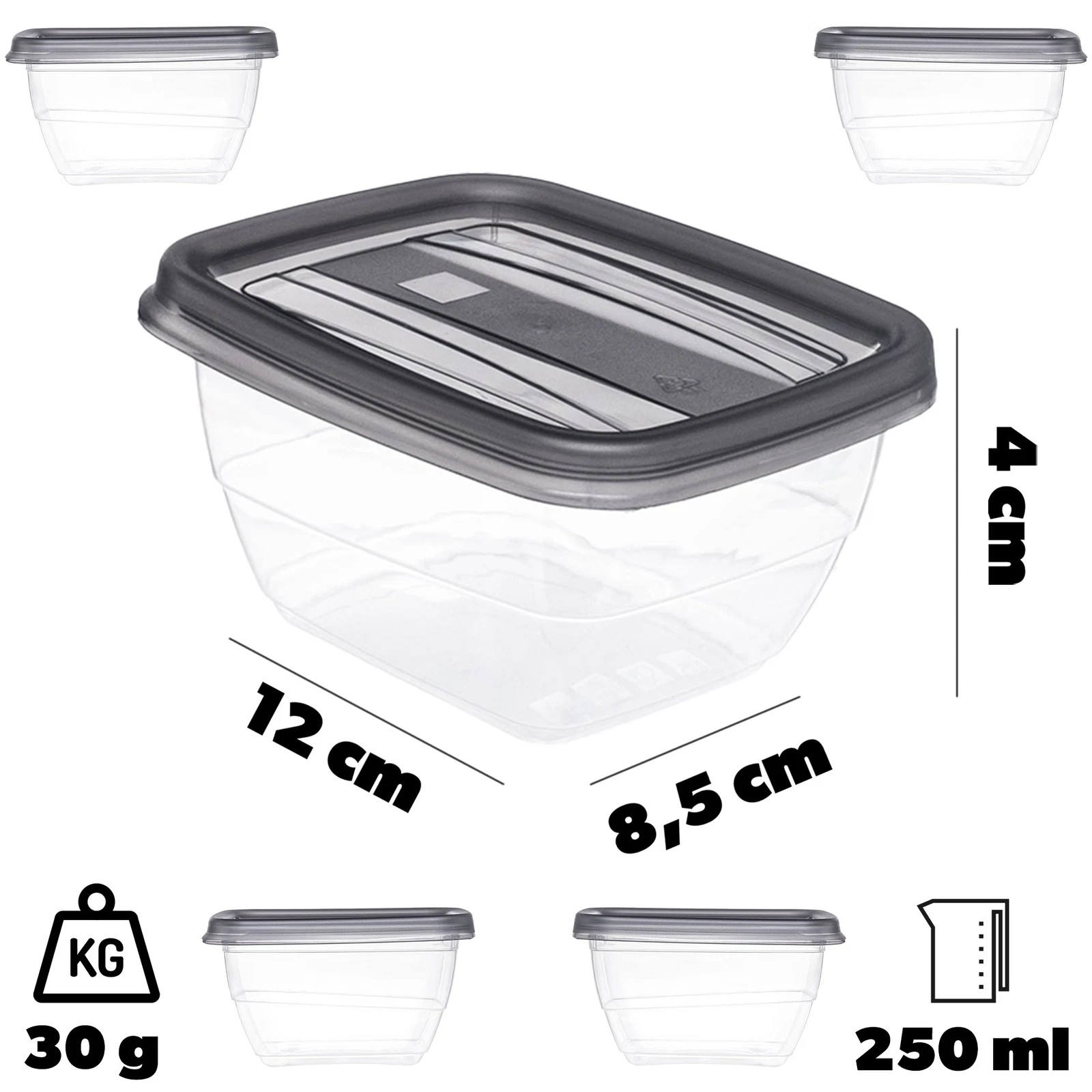 Špecifikácia pre produkt: CURVER Sada dóz na potraviny VEDO 5×0,25L | transparentná / sivá
