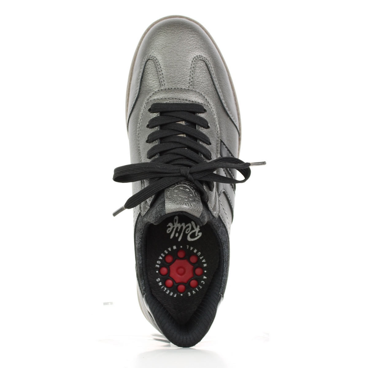 Dámske tenisky Relife, šedé, veľkosť 40,ponúkajú moderný štýl a výnimočné pohodlie na každodenné nosenie. Ich elegantný šedý metalický dizajn s čiernymi detailmi má nadčasový vzhľad a dá sa ľahko kombinovať s mestským aj športovo-ležérnym oblečením. Ľahká konštrukcia zaručuje pohodlie aj pri celodennom pohybe.Svršok je vyrobený z vysoko kvalitnej kombinácie PU materiálu a textílie, ktorá zaisťuje odolnosť, priedušnosť a ľahkú údržbu. Vnútorná textilná podšívka a stielka z bravčovej kože zaisťujú pohodlie, mäkkosť a optimálnu hygienu pri nosení. Pružná podrážka z TPR zaisťuje istý krok, stabilitu a odolnosť. Vďaka technológii Relife Soft Reflex System topánky absorbujú nárazy a podporujú prirodzený pohyb nohy.Parametre a špecifikácie