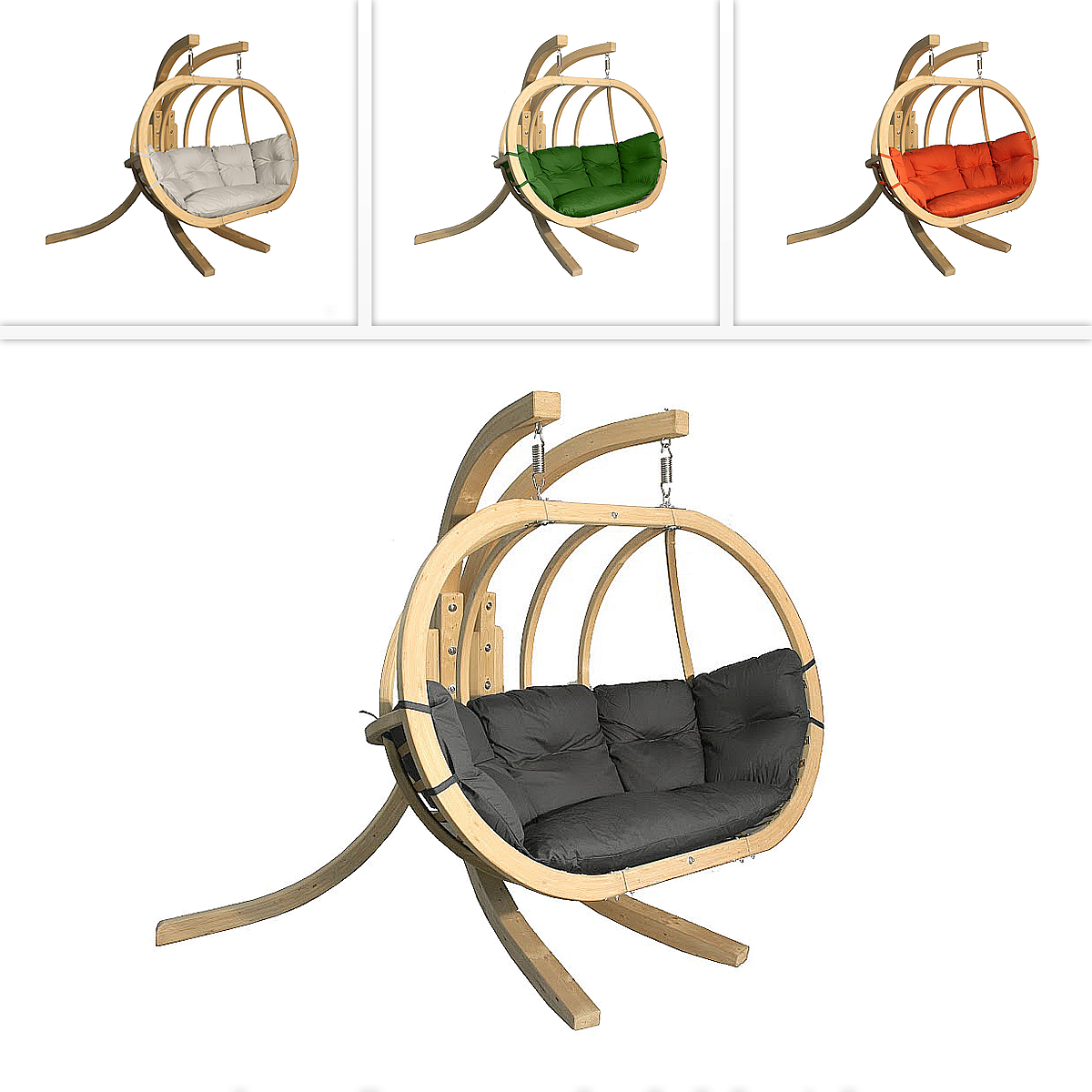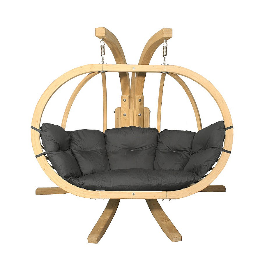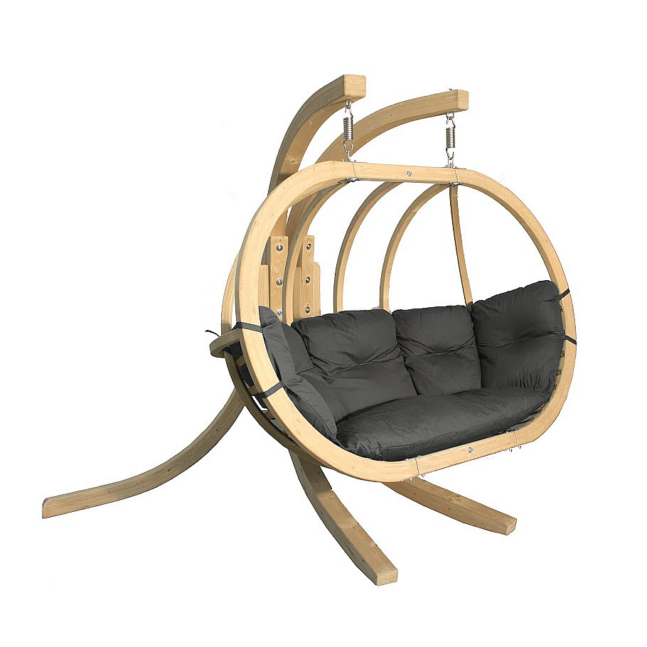 Nosný rám i kreslo samotné sú vyrobené zo smrekového dreva. Pevná konštrukcia unesie až 200 kg a na odolnosti mu pridáva tiež impregnácia. Celá hojdačka je navrhnutá tak, aby bola maximálne stabilná. Súčasťou kresla je poduška (vankúš) vo voliteľných farbách: natural a terakota, antracit a tmavo zelená. Polstrovanie má zips, vďaka ktorému môžete sňať a vyprať poťah.