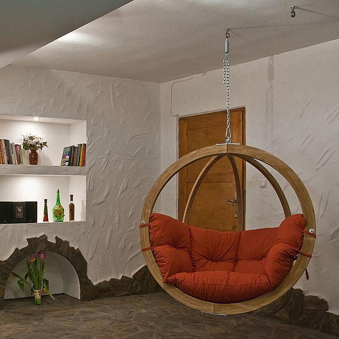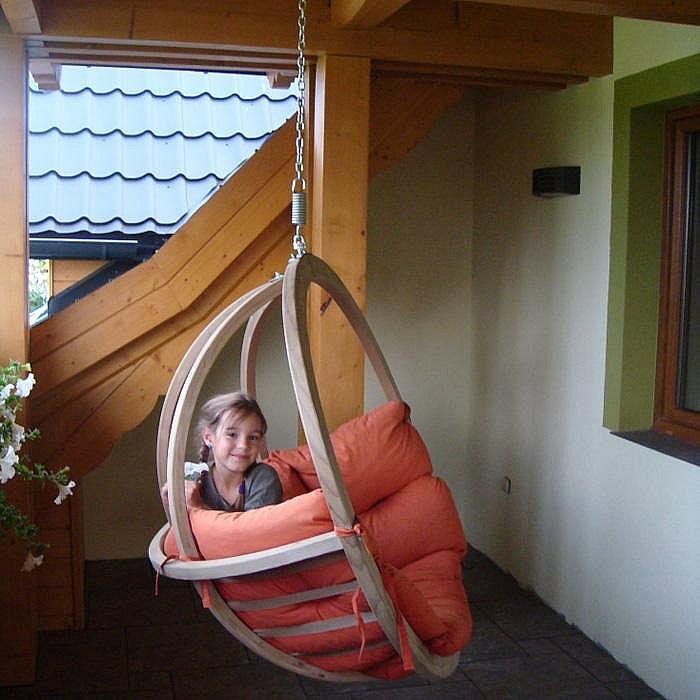 Závesné prevedenie šetrí miesto – kreslo môžete zavesiť do stropu interiéru, na verandu, do altánku, zimné záhrady, či v podkroví alebo v pivnici. Mäkké posedenie zaistí polstr (vankúš) vo voliteľných farbách: natural a terakota, antracit, tmavo zelená. Polstrovanie má zips, takže môžete zložiť poťah a v prípadne potreby ho vyprať. Luxusné hojdacie kreslo je perfektným parťákom pre voľné chvíle (nielen) na čerstvom vzduchu.
