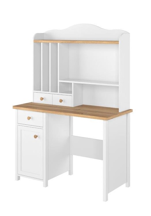 Detský sektorový nábytok LORRY je tou ideálnou voľbou pre všetky detské izby, ktoré chcú vyžarovať romantickým nádychom. Zostava detského sektorového nábytku LORRY je vyrobená v jemných farbách a tvaroch tak, aby bola vhodná pre dievčatá i chlapcov. Charakteristickou črtou pre detský sektorový nábytok je elegantné biele matné farebné prevedenie, ktoré vkusne dopĺňa svetlo – hnedá farba dub nash. Kolekcia detského nábytku LORRY navyše pozostáva z niekoľkých jednotlivých prvkov, ktoré sa dajú spolu veľmi jednoducho kombinovať, a tak prináša priestor pre kreatívne a variabilné umiestnenie. Nadstavba LORRY SO-04 je vhodná k písaciemu stolíku LORRY SO-03.