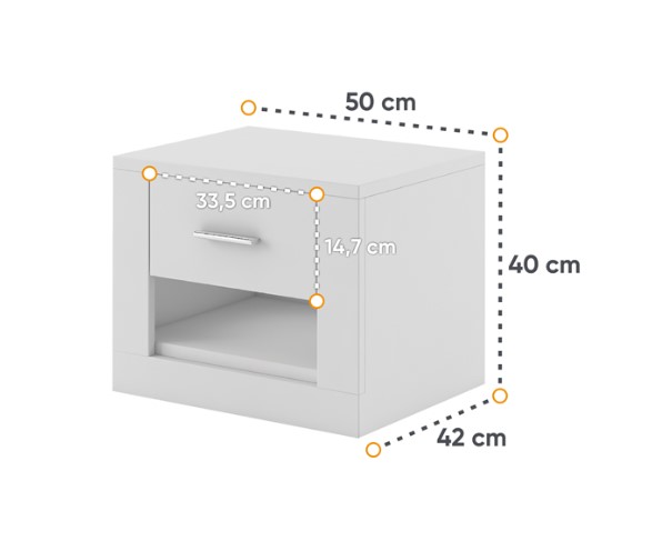 Špecifikácia pre produkt: Dig-net nábytok Nočný stolík TIAR AR-07 | biela