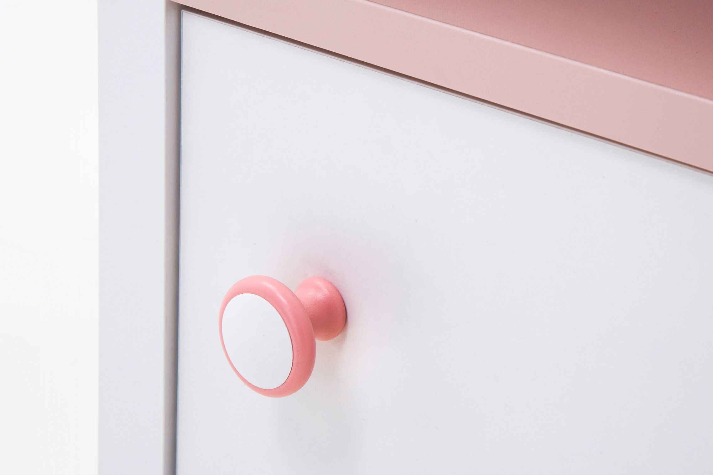 Nábytok je vyrobený z kvalitného a odolného lamina v hrúbke 16 mm, vrchná doska v ružovej farbe je v hrúbke 18 mm. Zadná časť nábytku a dno zásuvky sú z odolnej HDF v hrúbke 3 mm. Čistenie je jednoduché, stačí zotrieť navlhčenou handričkou alebo prípravkom určeným na nábytok. Pre väčšiu bezpečnosť je odporúčané nábytok pripevniť k stene.
