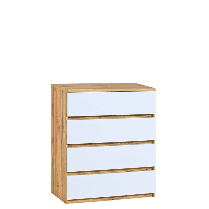 Komoda ARCHA AR5 s bielymi dvierkami a korpusom v svetlých dubových odtieňoch je elegantným a praktickým doplnkom, ktorý oživí každú miestnosť vo vašej domácnosti. Jej čisté biele dvierka vytvárajú jemný kontrast so svetlým dubovým korpusom, čím vnáša do interiéru moderný, no zároveň prírodný nádych. Táto komoda nie je len estetickým kúskom nábytku, ale aj funkčným riešením pre uskladnenie rôznych predmetov, vďaka jej štyrom zásuvkám. Či už ide o obývačku, spálňu alebo predsieň, komoda svojím univerzálnym dizajnom a praktickým úložným priestorom bez problémov zapadne do akéhokoľvek interiéru, pričom prispieva k jeho celkovej útulnosti a poriadku. Vďaka bezúchytovému systému otvárania zásuviek ponúka čistý, moderný vzhľad aj maximálnu praktickosť.