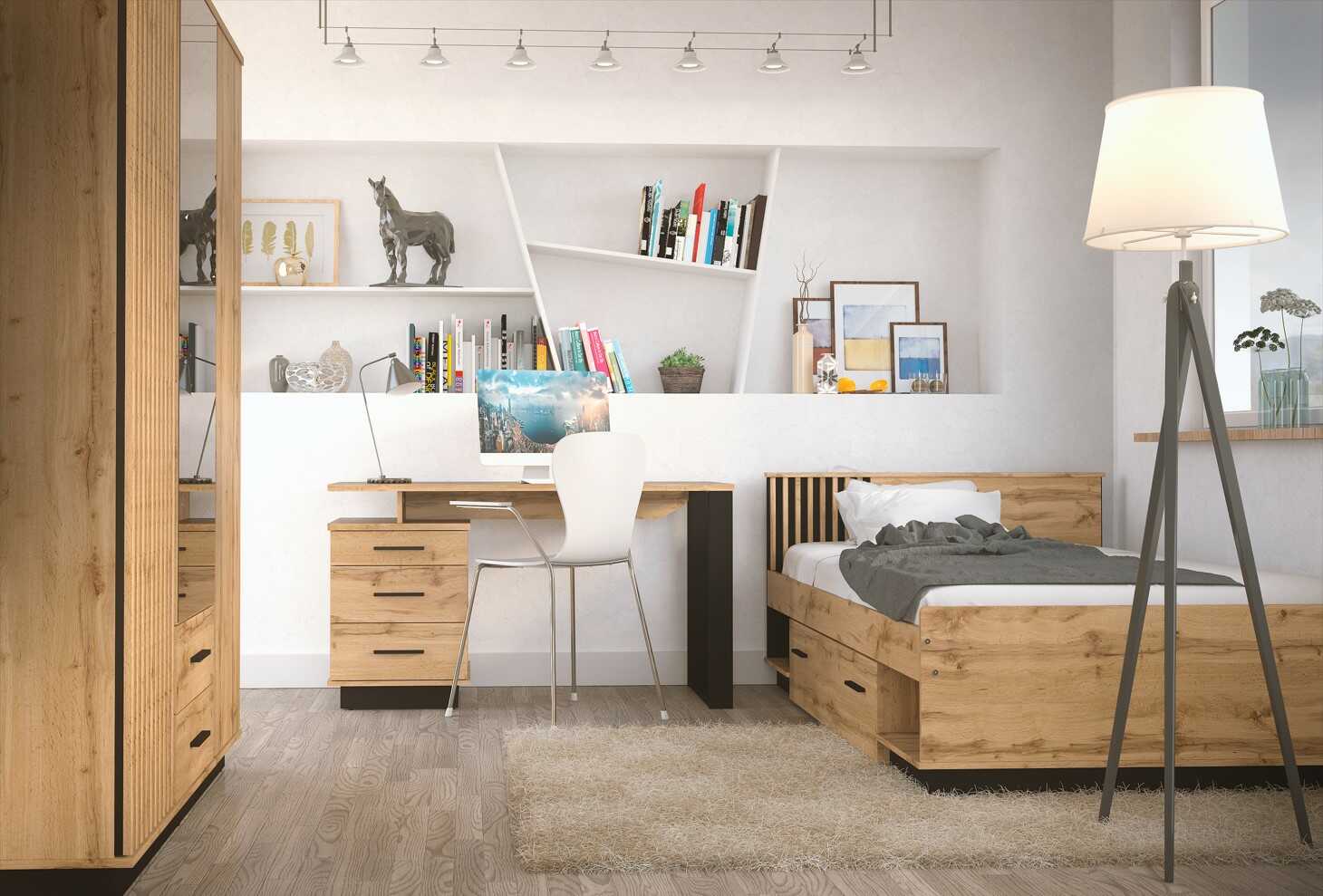 Pokiaľ si chcete zariadiť spálňu, máme pre Váš riešenie. Prepracovaná šatníková skriňa CARMELO LA15 ponúka množstvo úložného priestoru prevedení v obľúbenej farebnej kombinácii dubu s čiernou. Lamely sú čoraz viac populárnejšie a vďaka čiernemu podkladu pôsobí zostava opticky väčšia. Celkový dojem dotvára čierny sokel a jednoduché čierne úchyty, ktoré v kombinácii s dubom wotan pôsobia veľmi elegantne. Šatníková skriňa CARMELO LA15 je trojdverová s dvomi zásuvkami, jedny dvierka z toho sú s lamelami. Oceníte dostatok úložného priestoru a štýlové prevedenie skrine.