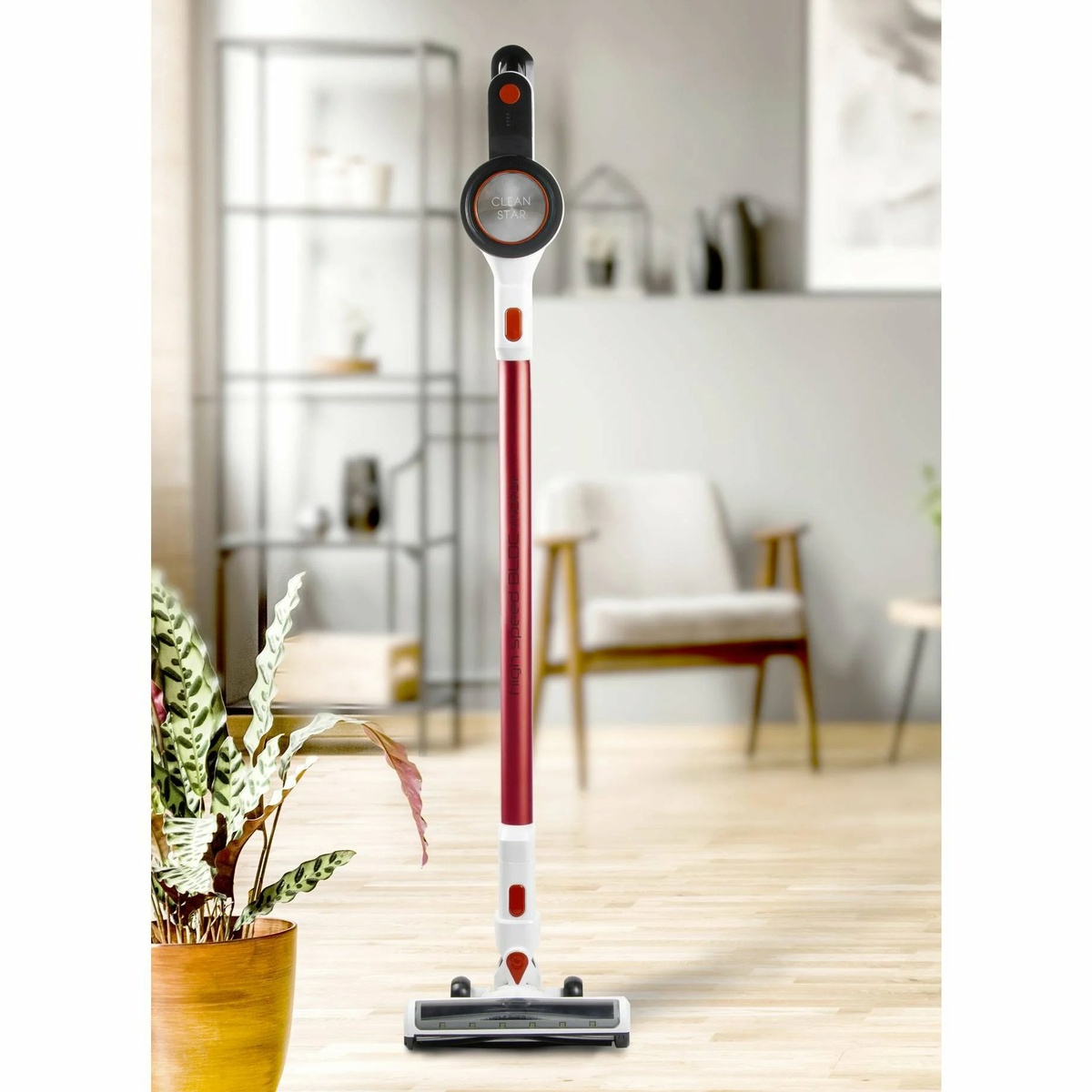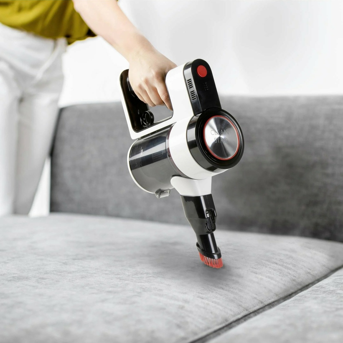 Tyčový a ručný vysávač 2v1 je skvelým každodenným pomocníkom na upratovanie domácnosti aj automobilu. Vďaka bezdrôtovému prevedeniu sa môžete pohybovať bez obmedzenia, čo umožňuje pohodlné vysávanie veľkých plôch, pohoviek alebo dokonca pavučín na strope. Vysávač je vybavený digitálne riadeným bezuhlíkovým BLDC motorom, ktorý zaisťuje výnimočný výkon a dlhú životnosť prístroja.Vysávač má bezvreckový systém a je napájaný akumulátorom Li-ion 21,6 V DC. Objem nádoby na prach je 0,55 l, čo stačí na dlhšie vysávanie bez nutnosti častého vysypávania. Hlučnosť prístroja je 80 dB. Disponuje dvoma voliteľnými stupňami výkonu a ponúka sací podtlak až 20 kPa. Plné nabitie trvá 4-5 hodín a doba vysávania sa pohybuje až okolo 25 minút, závisle od zvoleného výkonu.Filtračný systém vysávača využíva cyklónový systém pre hrubé nečistoty a HEPA filter na zachytávanie jemných častíc, plesní, alergénov a iných mikroorganizmov. Filtračný systém je plne rozoberateľný a umývateľný na ľahké čistenie.Funkcie vysávača zahŕňajú možnosť premeny na ručný vysávač pre ľahké čistenie nábytku, stola alebo interiéru automobilu. K dispozícii je tlačidlo pre voľbu výkonu v dvoch stupňoch a LED kontrolky indikujúce stav nabitia batérie. LED diódy tiež osvetľujú priestor pred hubicou. Vďaka spúšti je možné ľahko otvoriť a vysypať prachovú nádobu.Vysávač je dodávaný s príslušenstvom, ktoré zahŕňa podlahovú hubicu s elektricky poháňanou turbokefou, prachovú kefu, štrbinovú hubicu a nabíjaciu stanicu s držiakom pre prístroj a príslušenstvo pre uchytenie na stenu.Všetky hubice je možné ľahko nasadiť buď priamo na motorovú časť alebo na saciu trubicu. Kefa na podlahovej hubici má štetiny rôznej tvrdosti, pričom tvrdšie štetiny zbierajú hrubé nečistoty a jemnejšie stierajú prach z povrchov. Kefu je možné jednoducho vybrať a vyčistiť. Vysávač je vybavený mäkčenými gumovými kolieskami pre lepšiu manévrovateľnosť a stabilné postavenie vďaka rovnému dnu motorovej časti.