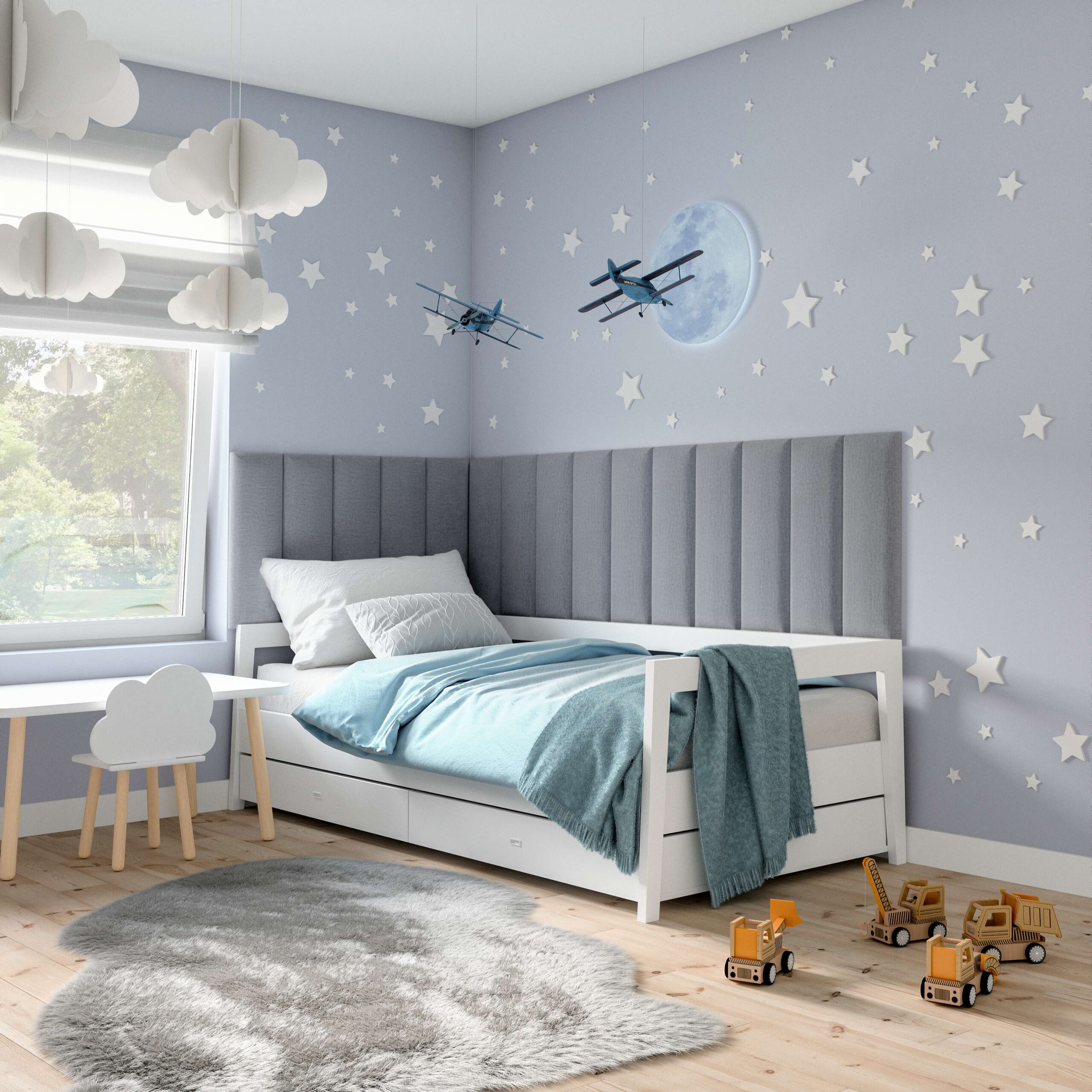 Stenový panel má pevný základ z MDF, ktorý zaručuje odolnosť proti poškodeniu a minimalizuje možnosť skrútenia. To znamená, že panel si zachováva svoj tvar aj po dlhšom čase. Je čalúnený látkou pripomínajúcou semiš, ktorá je príjemná na dotyk a zároveň odolná voči oderu a žmolkovaniu.