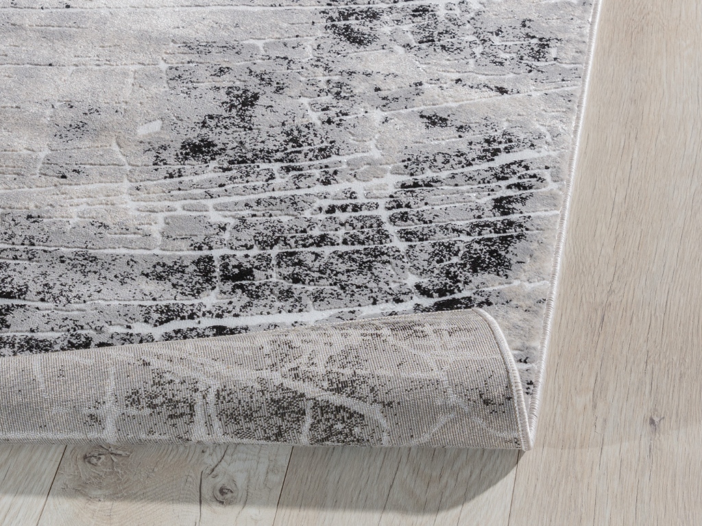 Koberec BARDOT GREY svou strukturou připomíná povrch Měsíce. Povrch koberce je tvořen abstraktními skvrnami a čarami v různých odstínech šedé. Díky tomu dokonale zapadne do místností s moderním designem a umožní dosáhnout dokonalého vzhledu. Koberec je vyroben z polyesteru a polypropylenu, což zajišťuje jeho vysokou trvanlivost, odolnost proti oděru a tření a také schopnost rychle se vrátit do původního tvaru.