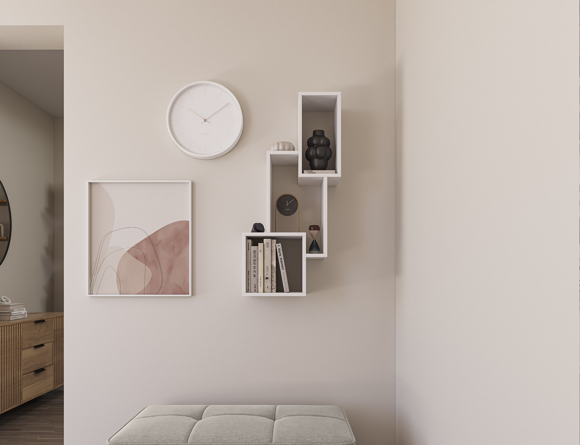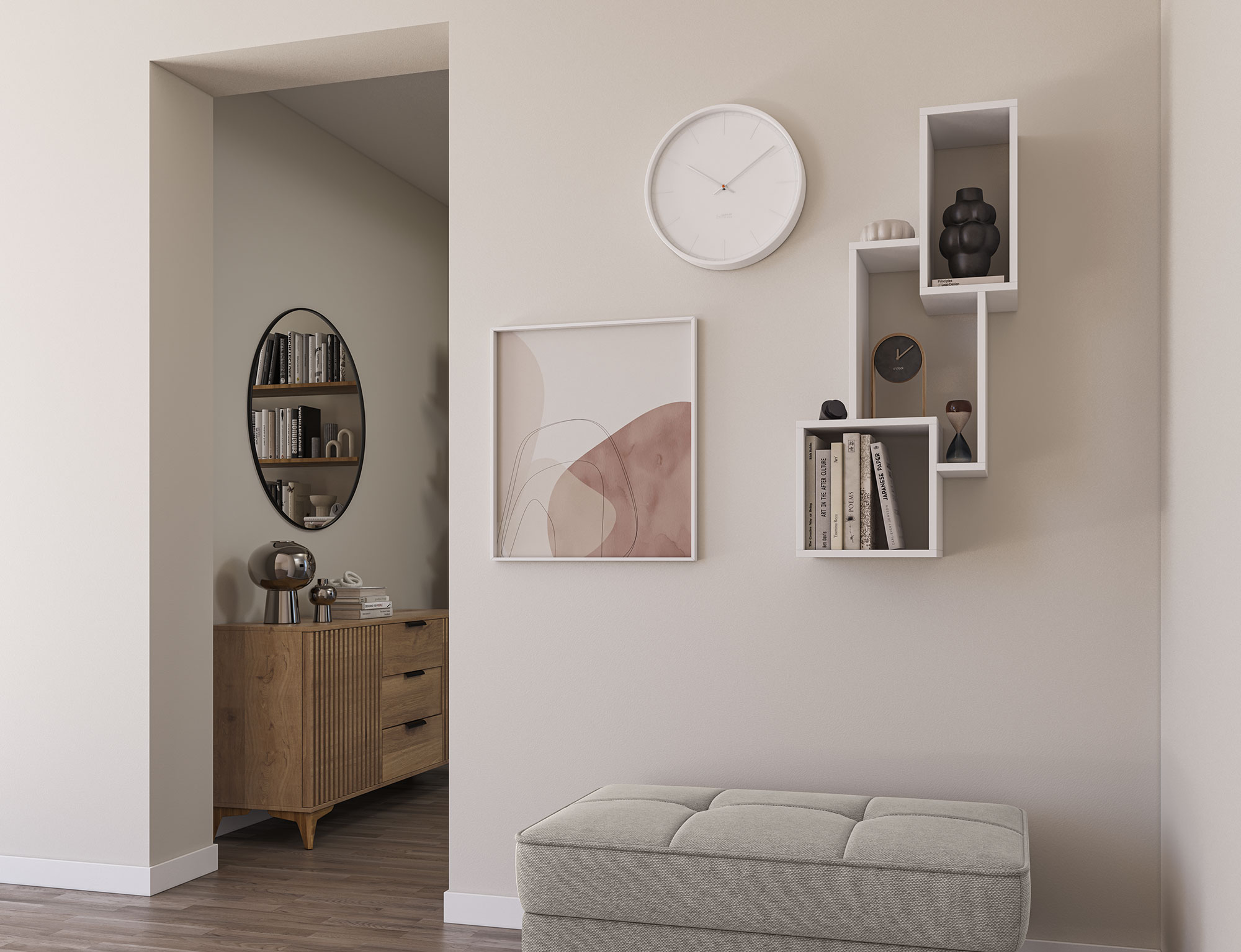 Nástenná polica ALITTY je nielen štýlová, ale aj funkčná. Skladá sa z troch menších políc rôznych veľkostí. Každá polica má inú veľkosť, čo umožňuje pútavé usporiadanie predmetov a vytvorenie zaujímavého vizuálneho zobrazenia na stene. Vďaka svojmu modernému dizajnu a univerzálnym rozmerom sa polica ALITTY hodí do rôznych štýlov interiéru.