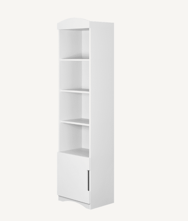 Úzky regál Classic je ideálnym doplnkom do detskej izby, pracovne či obývacej miestnosti. Vďaka svojmu štíhlemu tvaru a univerzálnemu bielemu prevedeniu pôsobí elegantne, moderne a zároveň nezaberá veľa miesta. Regál prináša prehľadný úložný priestor, ktorý pomáha udržiavať poriadok a zároveň dodáva interiéru sviežosť a svetlosť. Regál je vybavený štyrmi otvorenými policami a spodnou uzatvárateľnou skrinkou, ktorá je ideálna na uloženie vecí, ktoré nemusia byť na očiach. Otvorené police zase ponúkajú priestor pre knihy, hračky, dekorácie či školské potreby. Takto sa regál stáva nielen praktickým, ale aj estetickým prvkom v izbe.