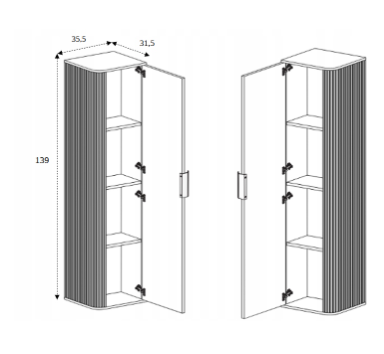 Potrebujete v kúpeľni viac úložného priestoru, no nechcete ju zahltiť? Vysoká kúpeľňová skrinka ELEGANCE v elegantnej bielej farbe je ideálne riešenie. Vďaka úzkemu, vertikálnemu tvaru ponúka veľa miesta na uloženie vecí, pričom zaberie minimum priestoru – skvelá voľba do menších kúpeľní aj do rodinných kúpeľní, kde je úložný priestor kľúčový. Dizajn zaujme na prvý pohľad: vertikálne drážkované čelo pôsobí prémiovo a moderne, zatiaľ čo jemná zlatá úchytka dodá celej skrinke luxusný detail. Biele prevedenie je nadčasové, ľahko kombinovateľné a krásne ladí s bielou sanitou, drevodekorom aj čiernymi či zlatými doplnkami. Vo vnútri nájdete prakticky riešený priestor na uteráky, kozmetiku, zásoby, čistiace prostriedky alebo doplnky – všetko bude prehľadne uložené a kúpeľňa zostane vizuálne čistá.