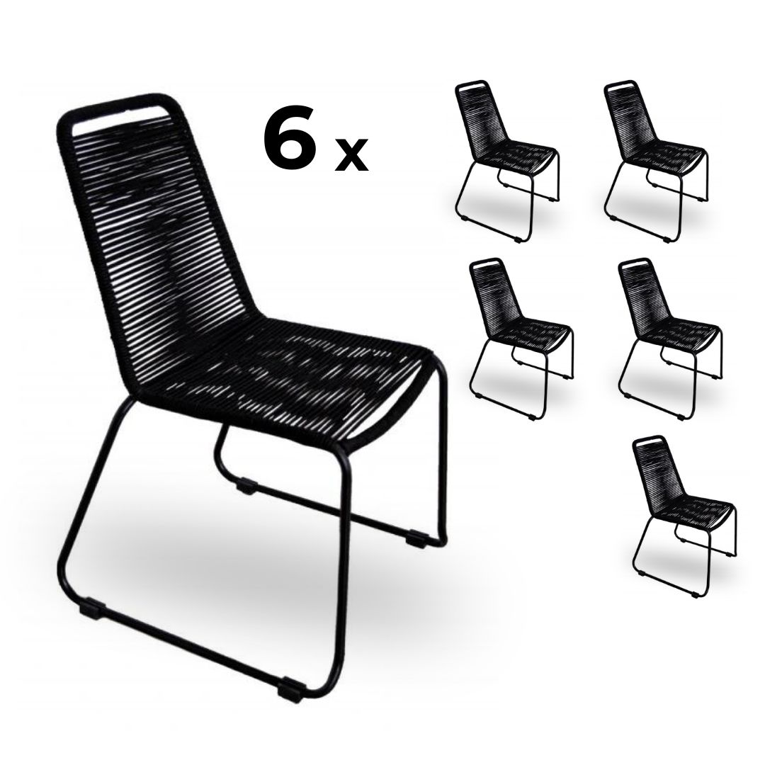 Oživte svoj exteriér s výhodným setom 6 záhradných stoličiek ENIGMA, ktorý spojuje elegantný dizajn s výnimočnou odolnosťou. Stoličky pôsobia dizajnovo a vďaka ručne pletenému lanu sú veľmi pohodlné, nepotrebujú sedák. Stoličky značky Elvisia sú ľahké a jednoducho sa prenášajú, čo vám umožní flexibilne usporiadať váš exteriér podľa vlastných predstáv. Nechajte sa unášať pohodlím a luxusom so záhradnými stoličkami ENIGMA, ktoré nie sú len estetickým prvkom vášho exteriéru, ale aj investíciou do vášho osobného relaxu. Výhodou stoličiek je, že sú stohovateľné.