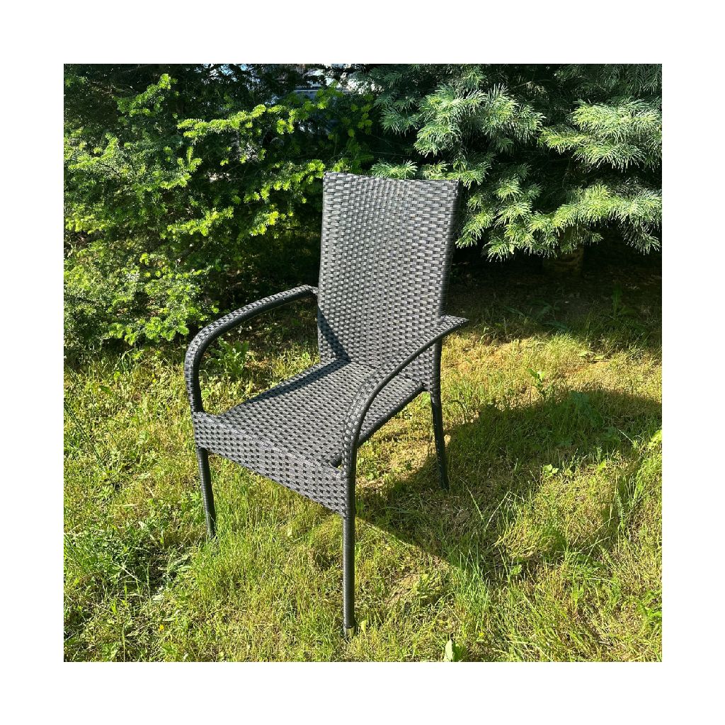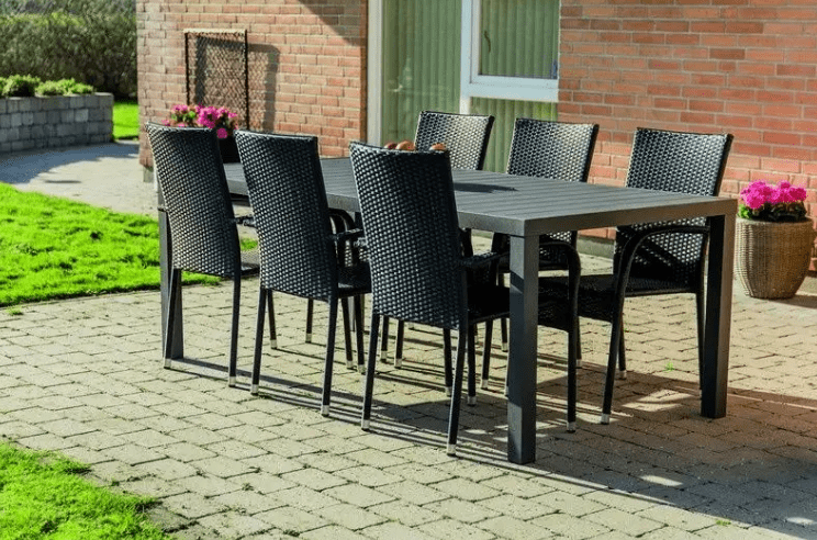 Odolná hliníková konštrukcia v kombinácii s polyratanom v čiernej farbe prináša do vášho záhradného priestoru dotyk moderného luxusu. Stolička je odolná voči poveternostným vplyvom a UV žiareniu. Kvalitná a pevná konštrukcia v kombinácii s nezničiteľným umelým ratanom zaručuje dlhú životnosť stoličky. Veľkou výhodou stoličiek je, že sú stohovateľné, čo oceníte po ukončení sezóny.