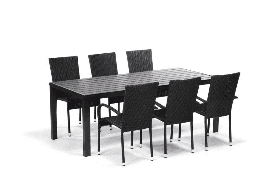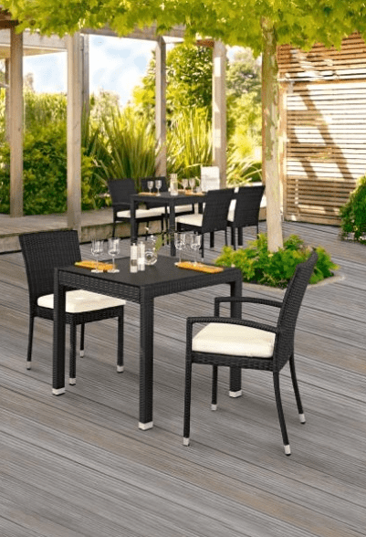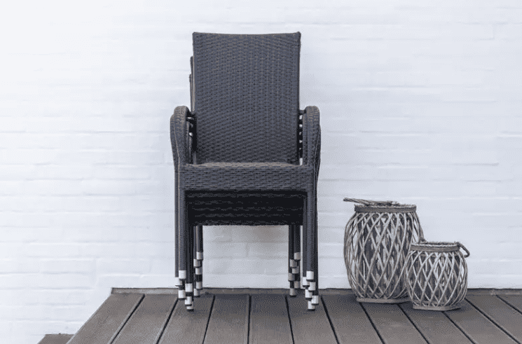 Odolná hliníková konštrukcia v kombinácii s polyratanom v čiernej farbe prináša do vášho záhradného priestoru dotyk moderného luxusu. Stolička je odolná voči poveternostným vplyvom a UV žiareniu. Kvalitná a pevná konštrukcia v kombinácii s nezničiteľným umelým ratanom zaručuje dlhú životnosť stoličky. Veľkou výhodou stoličiek je, že sú stohovateľné, čo oceníte po ukončení sezóny.