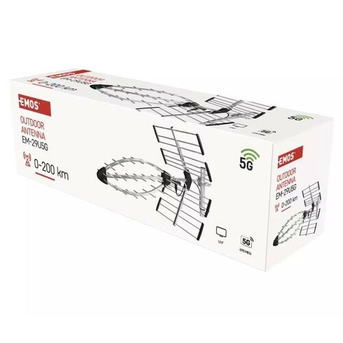 Profesionálna pasívna vonkajšia anténa so ziskom 17 dBi pripravená na príjem TV vysielania DVB-T2. Vzhľadom na svoju úzku smerovosť (38° horizontálne/80° vertikálne) je vhodná do miest vzdialených od najbližšieho vysielača alebo silne rušených mobilným signálom (k tomu je vybavená 5G filtrom). Vyznačuje sa veľmi jednoduchou montážou bez akéhokoľvek náradia. Na anténnom držiaku umožňuje horizontálnu aj vertikálnu polarizáciu. Anténa EM-29U5G je ideálnym riešením pre diaľkový príjem. Jej nasmerovanie vyžaduje precíznosť vzhľadom na úzky prijímací uhol (38° horizontálne a 80° vertikálne). Kráľovskou odmenou pre vás však bude nerušený príjem vašich obľúbených filmov a seriálov.Vďaka LTE a 5G filtru potláča anténa príjem nad kanálom 48. Anténa je preto vhodná aj do miest, kde je príjem týmito signálmi silne rušený. Anténny kábel pripojíte cez klasicky používaný F konektor. Po jeho zapojení môžete ladiť stanice na frekvenčnom rozsahu 470–698 MHz av pásme UHF.Anténa EM-29U5G obsahuje v balení všetko, čo budete potrebovať na jej montáž na anténny stožiar alebo na držiak. Montáž je veľmi jednoduchá bez nutnosti použitia náradia.Polarizácia je horizontálna aj vertikálna.Frekvenčné pásma: UHF.Príjem signálu: DVB-T/T2. LTE filter, 5G filter.Frekvenčný rozsah: 470-698 MHz.RF impedácia výstupu: 75 Ohm.Počet prvkov: 29.Prijímací uhol: 38° / 80°.Predozadný pomer: 25 dB.Typ pripojovacieho konektora: F konektor.Odporúčaná vzdialenosť inštalácie od vysielača: 0 – 200 km.Záručná doba je 2 roky.