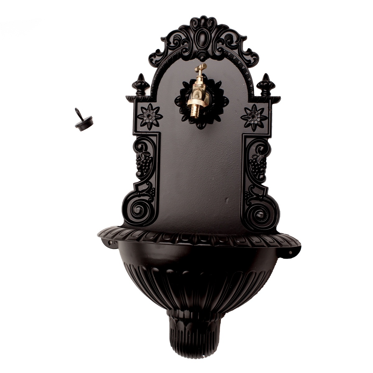 Nádherné retro umývadlo matne čiernej farby ozdobí vašu záhradu. Môžete ho umiestniť pod pergolu alebo na stenu a zaistiť si tak štýlový vonkajší prívod vody bez nevzhľadnej hadice. Kohúte a špunt je súčasťou balenia.