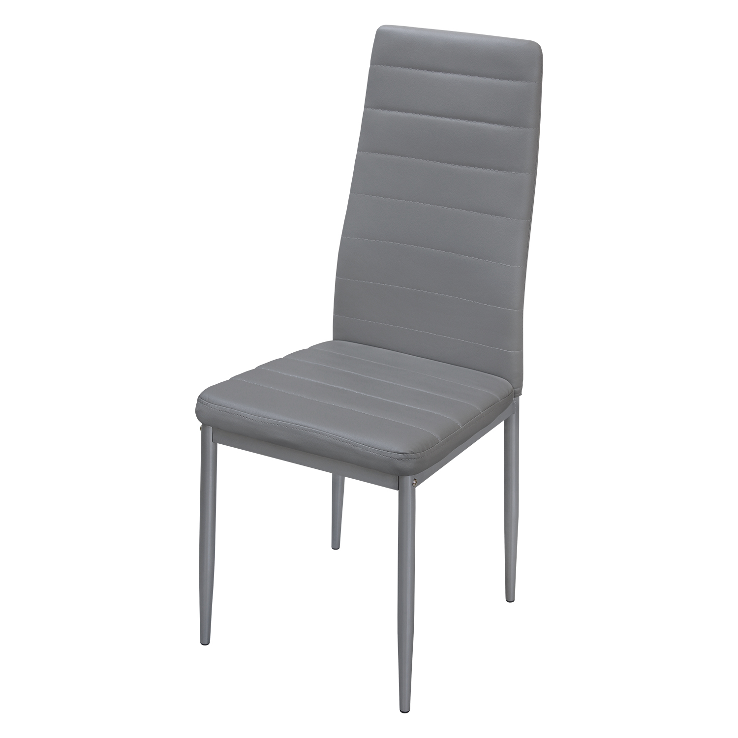 Poťah jedálenskej stoličky je vyrobený z imitácie kože. Stolička je k dispozícii v sivej farbe. Konštrukcia a nohy sú vyrobené z kovu. Výška sedu je 47 cm.