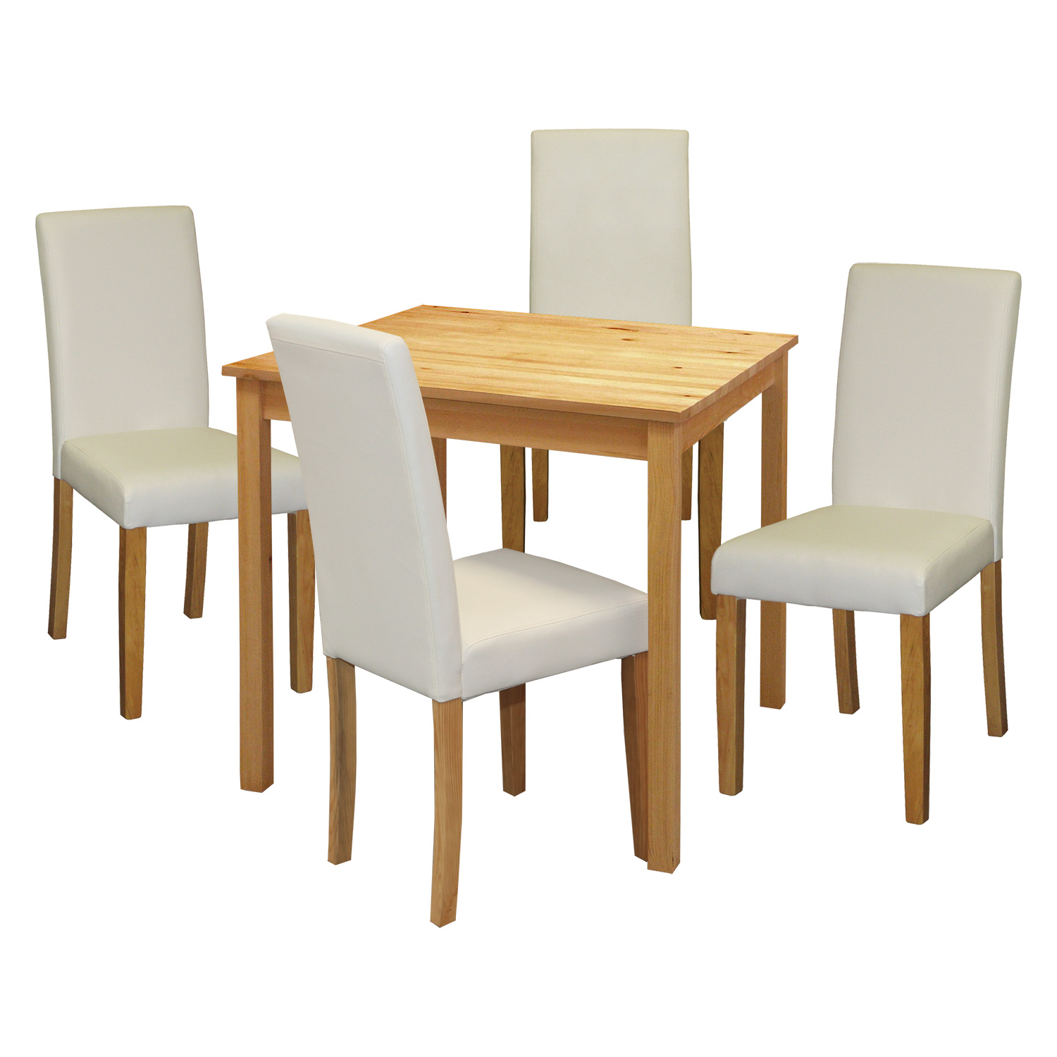 Modernú jedálenskú súpravu si môžete dopriať aj v menšej jedálni či v garsónke. Jedálenská súprava 4429 obsahuje svetlý jedálenský stôl so štvorcovou doskou a štyri stoličky s bielym poťahom. Kombinácia lakovaného masívu a bieleho poťahu vyzerá veľmi elegantne. Jedálenská súprava 4429 je zložená z jedálenského stola 8842 a 4 jedálenských stoličiek PRIMA 3037. Jedálenský stôl je v prevedení masív borovica lak, stoličky majú nohy z masívu lak a poťah z imitácie kože vo farebnom prevedení biela. Výška sedu stoličky je 47 cm, rozmer stola je 75 × 75 × 73 cm, rozmer stoličky je 42 × 48 × 92 cm. Sadnite si na biele stoličky s vyššou chrbtovou opierkou a príjemným hladkým poťahom, prestretý svetlý stôl vás bude lákať na ochutnanie dobrého jedla.