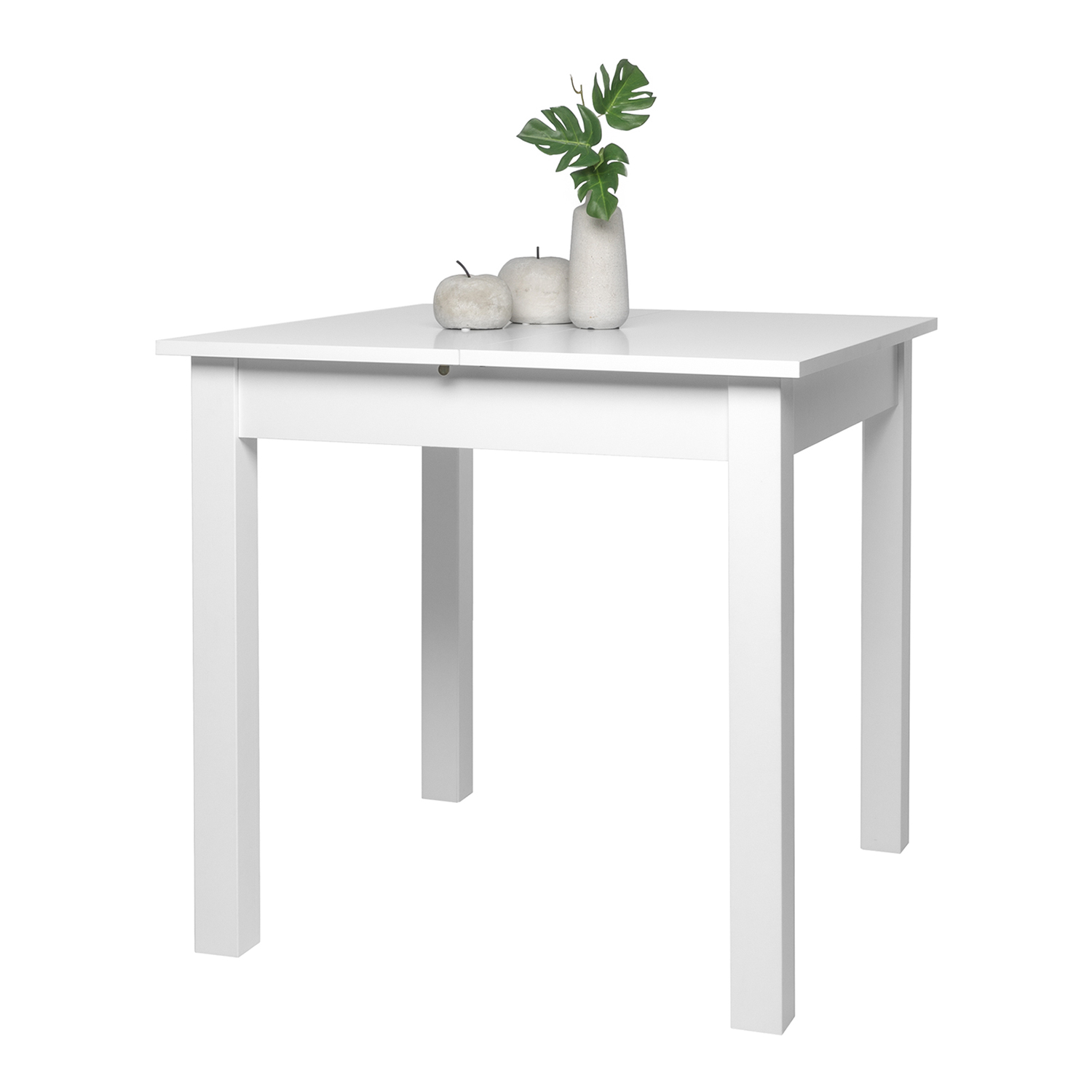 Jedálenský stôl COBURG 80 biely sa bude hodiť do jedálne s bielym nábytkom. Nábytok vo farebnom prevedení biela bude v jedálni vyzerať veľmi elegantne a príjemne. Jedálenský stôl s možnosťou rozloženia sa bude hodiť aj na rodinné oslavy či posedenia s priateľmi. Dĺžka rozloženého stola je 120 cm.