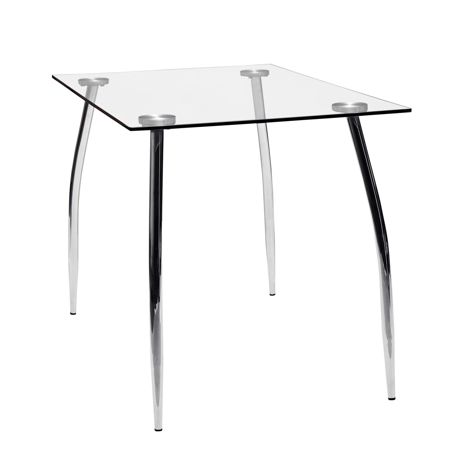 Jedálenský stôl Granada v kombinácii kov / číre tvrtdené sklo vám zaručí príjemné stolovanie. Stôl s doskou z číreho tvrdeného skla má kovové pochrómované nohy. Stôl možno kombinovať so stoličkami, ktoré majú tiež kovové pochrómované nohy, vznikne tak pekná jedálenská zostava.