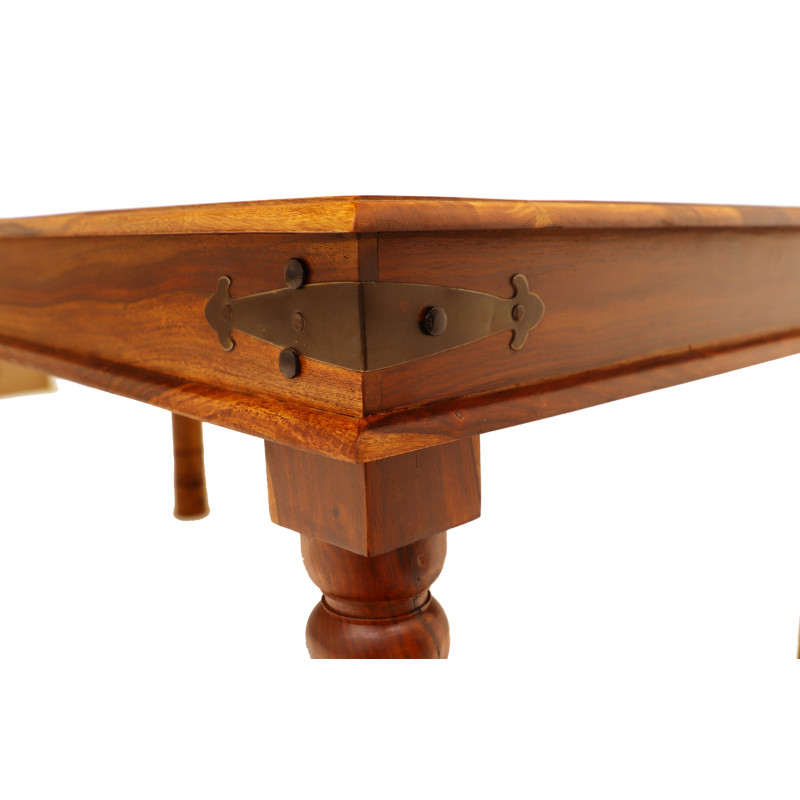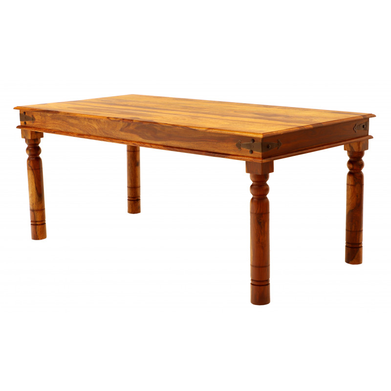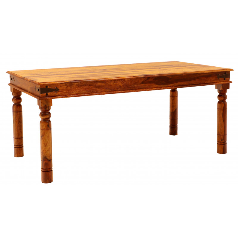 Jedálenský stôl masív Jali je vyrobený z kvalitného masívneho palisandrového dreva. Jedálenský stôl z masívu je vyrobený z indického masívu palisander. Na bokoch stola je ozdobné kovanie. Jedálne stoly z masívu, ktoré máme skladom si môžete pozrieť v našom showroome. Indický koloniálny nábytok palisander (sheesham) masív.