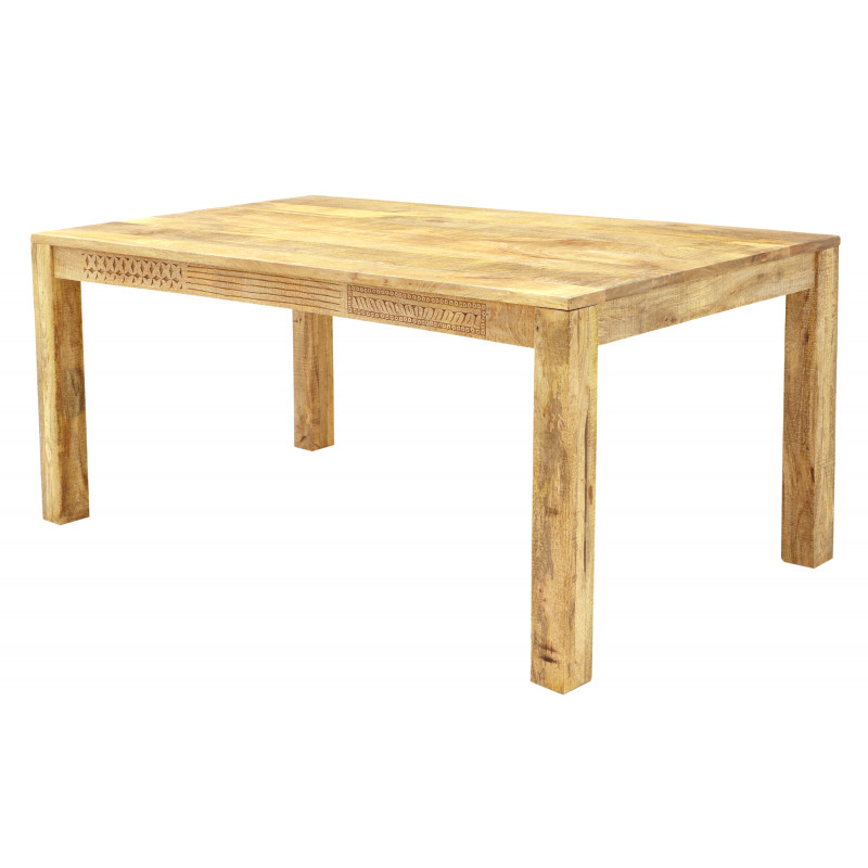 Jedálenský stôl Manu je vyrobený z kvalitného masívneho mangového dreva.Jedálenský stôl z masívu je vyrobený z indického manga. Jedálenské stoly z masívu, ktoré máme skladom, si môžete pozrieť v našom showroome. Indický koloniálny nábytok mango masív.