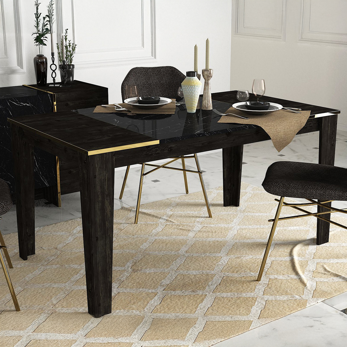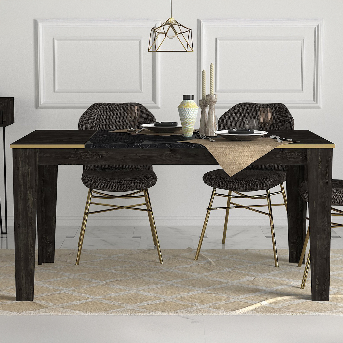 Kombinácia čiernej a zlatej farby dodá každej miestnosti nádych elegancie a sofistikovanosti. Kontrastné farby vytvárajú vizuálne výrazný kus, ktorý sa stane ústredným bodom vašej jedálne a zanechá vašich hostí v úžase.