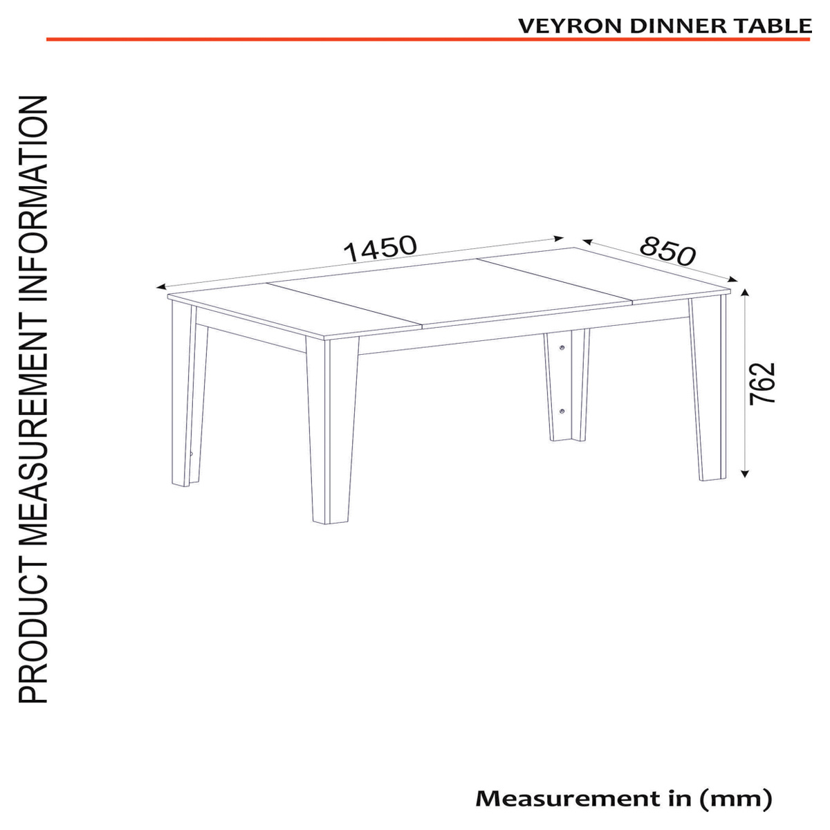 Tento jedálenský stôl, vyrobený s maximálnou precíznosťou, je vyrobený zo 100% melamínom potiahnutej drevotrieskovje dosky, ktorá zaisťuje odolnosť a dlhú životnosť. Hrúbka 18 mm mu dodáva robustnosť, takže sa stane spoľahlivým doplnkom vašej domácnosti na dlhé roky.