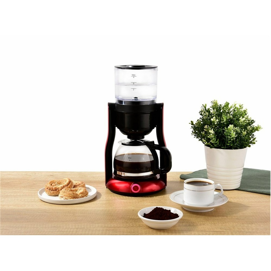 Kompaktný kávovar CM 2000 RD až na 4 šálky/0,5 litra kávy, je ideálny pre menšie domácnosti, študentov či seniorov. Použitie je veľmi jednoduché, naplňte hornú nádržku vodou, do filtra nasypte kávu a váš nový kávovar je pripravený na použitie. Má vyberateľnú nádržku na vodu s objemom 0,5 litra. Automatický DRIP-STOP systém proti vykvapkávaniu kávy pri vybratí kanvice. Ponúka tiež funkciu udržiavania teploty.