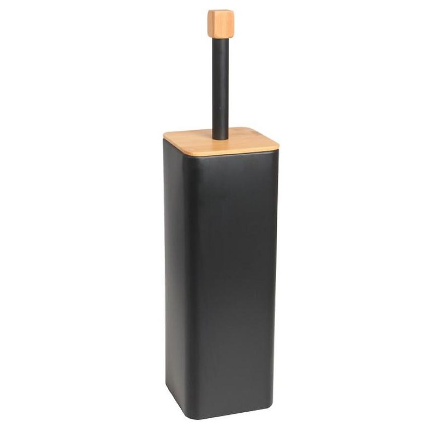 Stojan na WC kefu a toaletný papier čierna/bambus