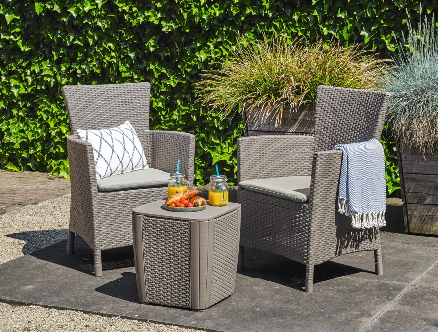 Kvalitný lisovaný plast zaručuje dlhú životnosť nábytku, je odolný voči nepriaznivým vplyvom počasia a zároveň voči UV žiareniu. Na jeho údržbu postačí voda a jemný čistiaci prostriedok.