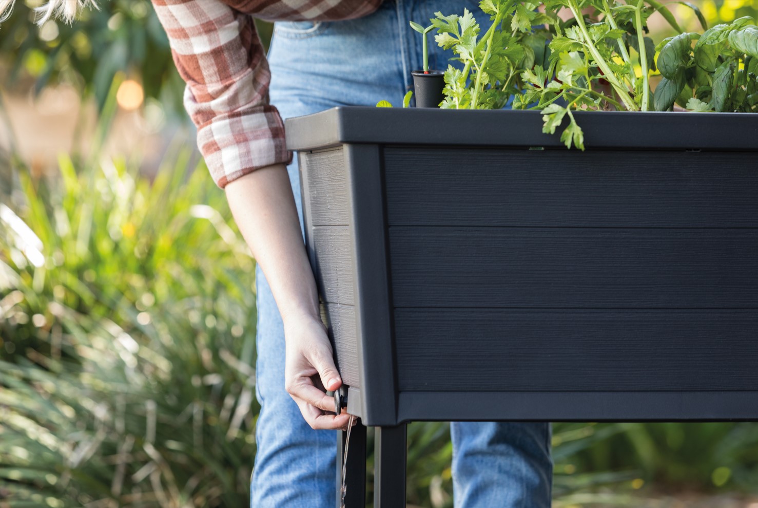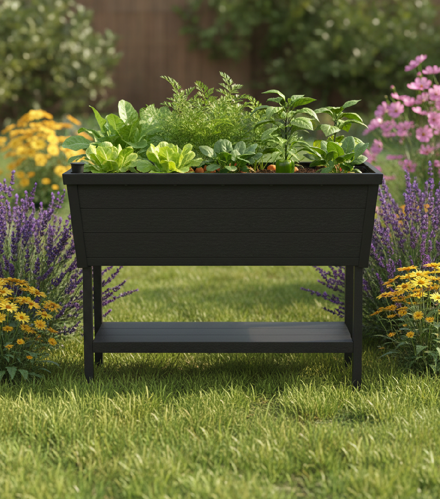 Inteligentný a dizajnový kvetináč GARDEN PLOT je väčšia verzia kvetináča so zabudovaným zavlažovacím systémom, ktorý uľahčuje pestovanie rastlín. Praktický indikátor hladiny vody pomáha predchádzať nadmernému zalievaniu. Súčasťou kvetináča je aj praktická polica na odkladanie záhradného príslušenstva.