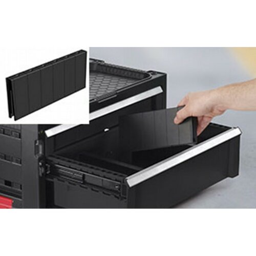 Praktická 2-zásuvková skrinka na náradie ponúka priestor na množstvo náradia a príslušenstva v dielni alebo garáži. Obsahuje hlbokú zásuvku s vyberateľnými prepážkami na väčšie a ťažšie náradie. Nízka zásuvka umožní uložiť menšie náradie, príslušenstvo a predmety.Deliace priečky sa dajú ľahko vybrať a priestor usporiadať podľa svojich potrieb. Stohovateľný dizajn s jednoduchou montážou a demontážou ďalších blokov.Dielenský vozík Keter je vyrobený z pevného a odolného plastu. Tento materiál nepodlieha korózii, nepotrebuje dodatočnú úpravu povrchu a bude vám slúžiť dlhú dobu.