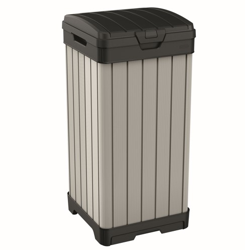 Udržiavajte záhradu či terasu čistú a upravenú so smetnou nádobou FORDRO, ktorá má moderný dizajn. Imitácia dreva v elegantnej čiernej farbe dokonale ladí s okolím a neruší estetiku priestoru. Odolná dvojstenná konštrukcia zaručuje dlhú životnosť a praktické dvojité veko zabraňuje otvoreniu aj pri náhodnom prevrátení.