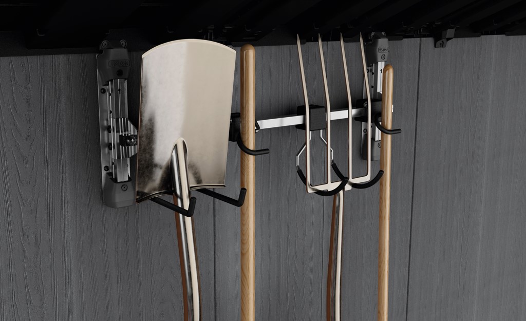 Viacúčelový nástenný vešiak je navrhnutý tak, aby zaistil pohodlné a bezpečné uloženie záhradného náradia. Predstavuje skvelý spôsob na uloženie náradia na stenu. Vďaka nastaviteľnej polohe háčikov si ľahko zorganizujete svoj úložný priestor.