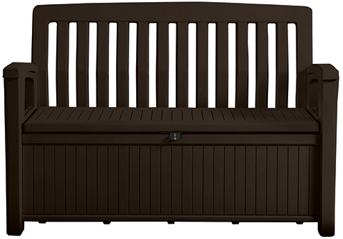 Štýlová lavica alebo odkladací box PLAZA v hnedej farbe je perfektné riešenie pre tých, ktorí chcú ukladať predmety zo záhrady praktickým spôsobom. Vďaka svojej schopnosti, bude úložný box ideálny pre deku, vankúše a zároveň bude slúžiť ako rekreačné zariadenie.
