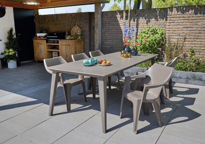 Nízko údržbová záhradná stolička DATTEN v nadčasovom farebnom prevedení cappuccino. Záhradná stolička je stohovateľná a veľmi ľahká pre jednoduché uskladnenie. Oceníte podrúčky a vysoké operadlo , ktoré zabezpečia pohodlie pri sedení.