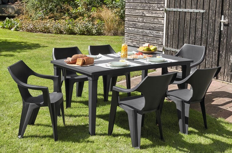 Nízko – údržbová záhradná stolička DATTEN v nadčasovom farebnom prevedení grafit. Záhradná stolička DATTEN je odolná voči hrdzi, hnilobe a ďalším poškodeniam spôsobených nepriaznivým počasím. Záhradná stolička je stohovateľná a veľmi ľahká pre jednoduché uskladnenie. Oceníte podrúčky a vysoké operadlo , ktoré zabezpečia pohodlie pri sedení.