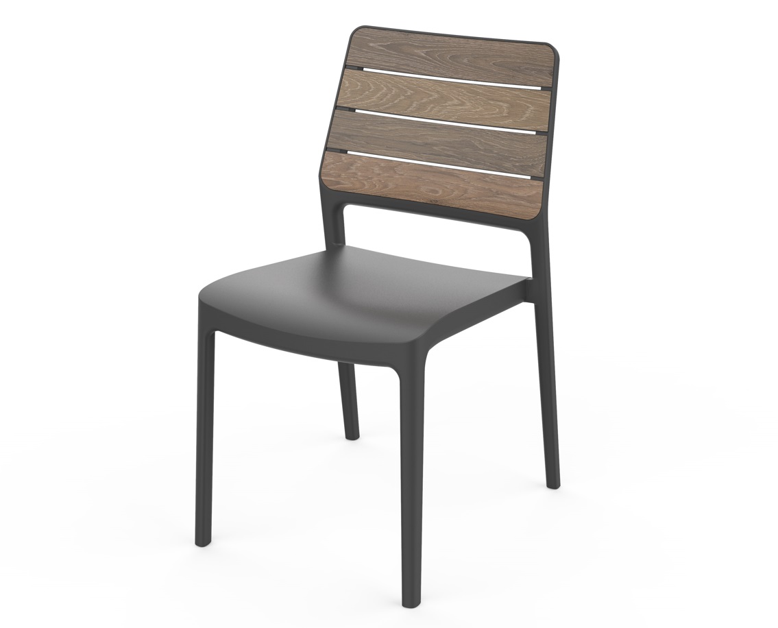 Táto veľmi pevná, elegantná a pohodlná záhradná stolička DEPORTO je ideálnou voľbou do interiéru aj exteriéru. Vďaka svojmu modernému dizajnu v prevedení walnut -vlašský orech a grafit pôsobí štýlovo a ľahko sa kombinuje s rôznym zariadením. Záhradná stolička nie je polohovateľná, no jej ergonomický tvar zabezpečuje komfortné sedenie. Stolička je stohovateľná, čo umožňuje jednoduché uskladnenie aj väčšieho počtu kusov.