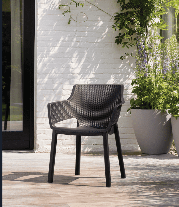 Záhradná plastová stolička EVELINA spája štýl, pohodlie a trvanlivosť, aby ste si mohli plne vychutnať váš čas vonku. Obľúbená farba grafit prináša do vašej záhrady moderný a elegantný vzhľad, jej štýlový dizajn bude skvelým doplnkom k akémukoľvek záhradnému stolu. Oceníte nízku hmotnosť a možnosť uloženia na seba, nakoľko sú stohovateľné. Užívajte si krásne dni a večery v záhrade s kvalitnými plastovými stoličkami EVELINA!