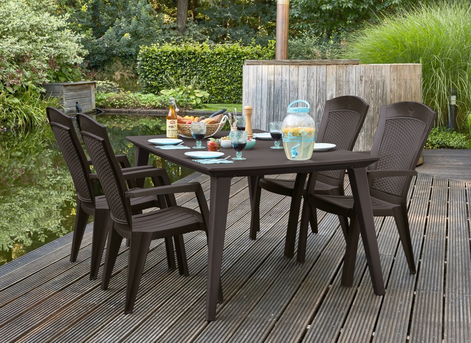 Moderná záhradná stolička METASSA v hnedej farbe má pohodlné sedenie s vysokou opierkou. Záhradná stolička je stohovateľná pre jednoduchšie uskladnenie. Záhradná stolička je vyrobená z kvalitného materiálu, ktorý sa jednoducho čistí. Kúpte si stoličku a vychutnajte si komfortné sedenie na záhrade.