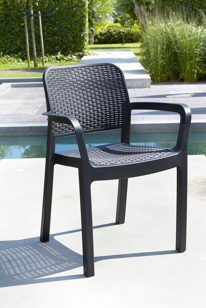 Záhradné kreslo SAMANTHA vo farbe grafit kombinuje robustnú konštrukciu a klasickú eleganciu. Tvarované operadlo kresla SAMANTHA s ratanovou väzbou a stabilnými opierkami sú maximálne pohodlné. Stolička sa vyznačuje vysokou stabilitou a odolnosťou voči poškodeniu. Moderné prevedenie stoličky SAMANTHA si nájde svoje miesto v každej záhrade či na terase.