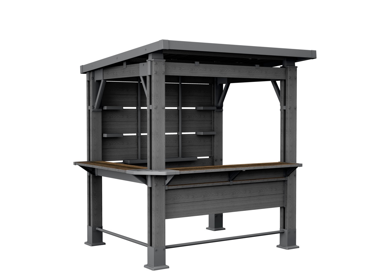 Záhradný bar je vyrobený z kvalitných recyklovaných materiálov, ktoré predstavujú ekologickú alternatívu k tradičným dreveným stavbám bez potreby odlesňovania či nadmernej ťažby prírodných zdrojov. Materiály sú odolné voči vlhkosti, dažďu, slnečnému žiareniu aj bežnému znečisteniu, vďaka čomu si zachovávajú svoj vzhľad a pevnosť dlhodobo. Konštrukcia je navrhnutá tak, aby poskytovala dlhodobú spoľahlivosť bez potreby pravidelnej každoročnej údržby či opráv. Montáž je jednoduchá a zvládnete ju približne za niekoľko hodín s pomocou dvoch osôb.