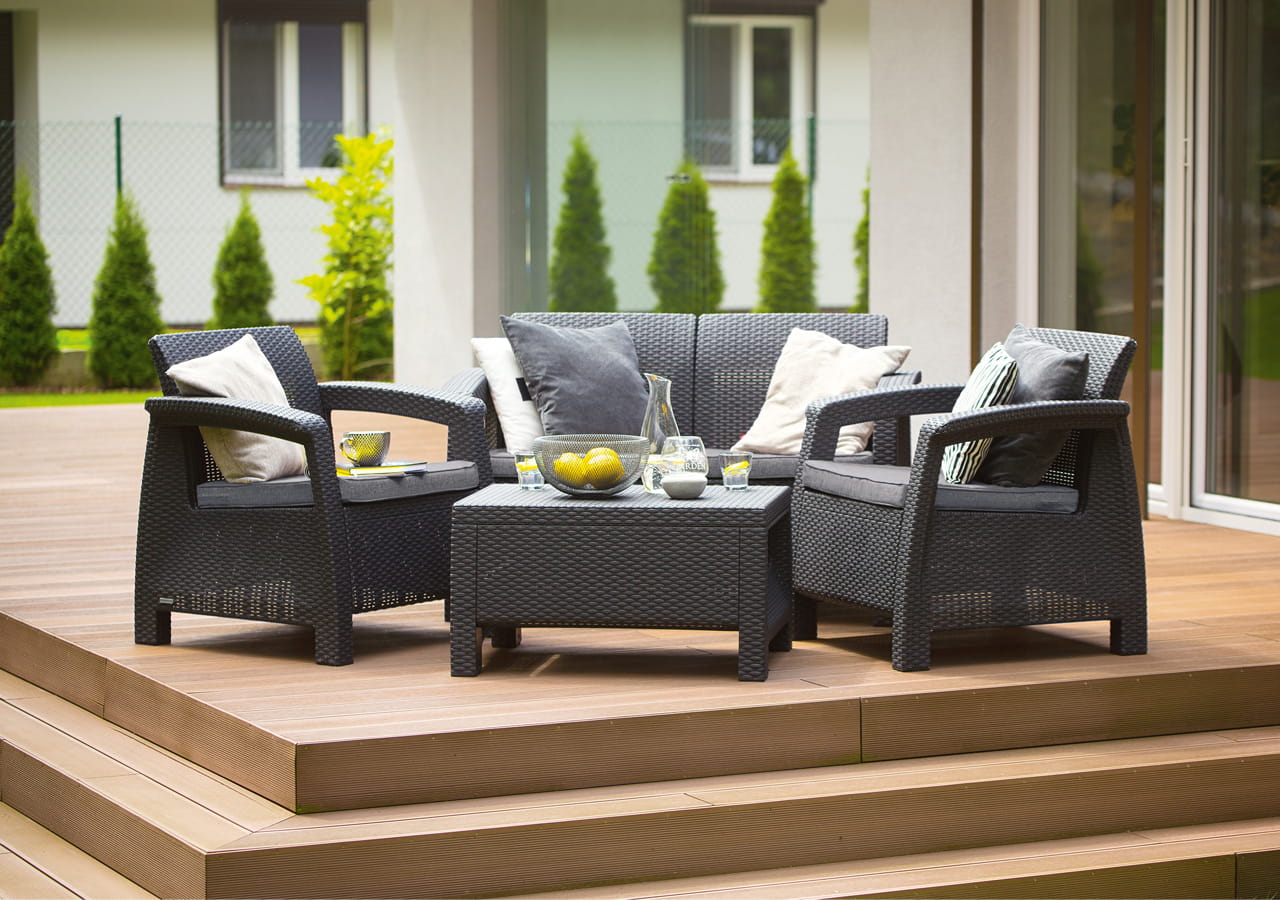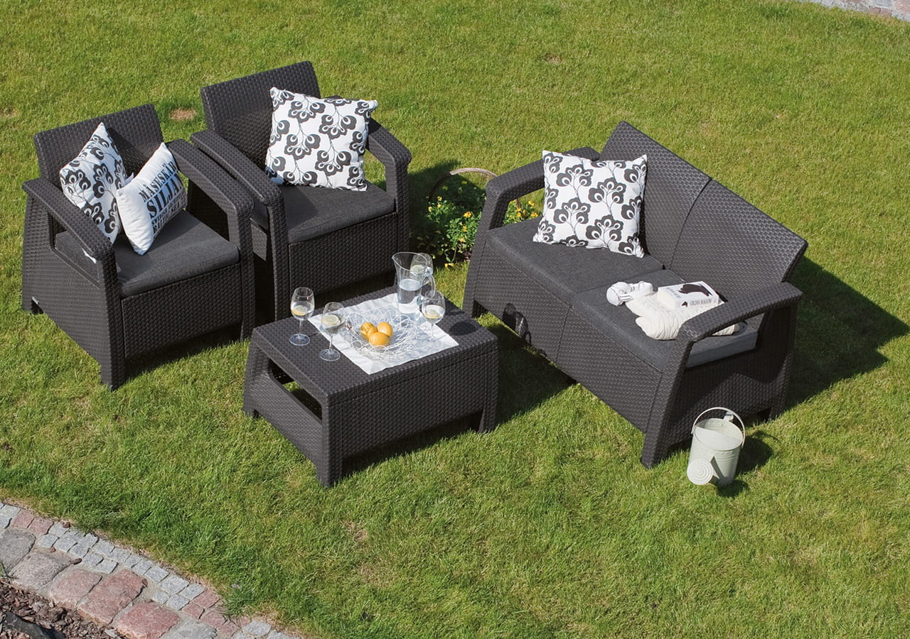 Kvalitný lisovaný plast zaručuje dlhú životnosť nábytku, je odolný voči nepriaznivým vplyvom počasia a zároveň voči UV žiareniu. Na jeho údržbu postačí voda a jemný čistiaci prostriedok.