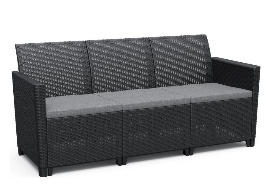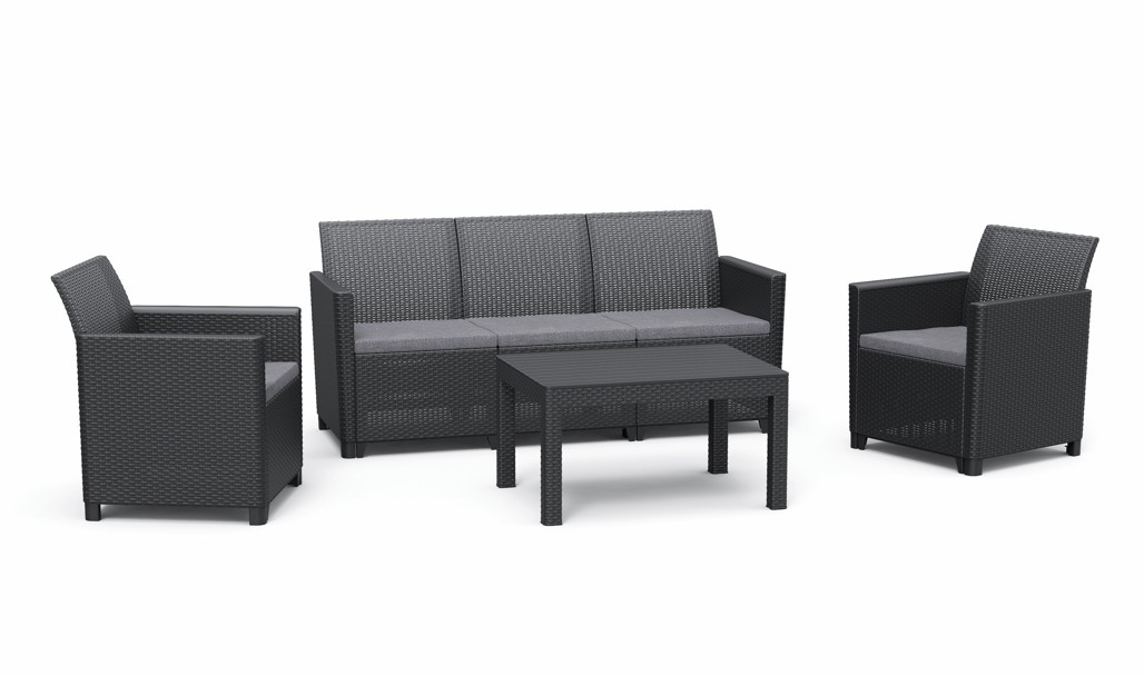 Záhradný set CLARA 5 big table je vyrobený z lisovaného plastu v imitácii prírodného ratanu. Vankúše, ktoré sú súčasťou súpravy, vám poskytnú pocit pohodlia počas chvíľ odpočinku. Vďaka modernému a pohodlnému posedeniu CLARA premeníte svoju terasu alebo balkón na miesto oddychu a relaxu, v ponuke sú rôzne stoly, kreslá a pohovky. Súprava sa skladá z 3-miestnej pohovky, 2 kresiel a stola.