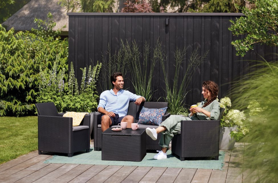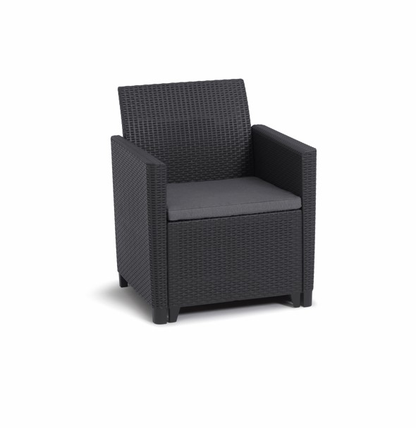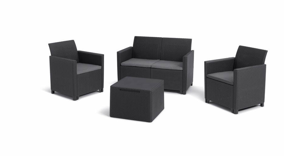 Záhradný set MARIANNE 2 storage box Vás presvedčí, že potrebujete nový záhradný nábytok. Elegantné prevedenie a pohodlné sedenie sú hlavnými výhodami setu Marianne. Premeňte svoju terasu, balkón alebo dvor so súpravou MARIANNE, ktorá je vyrobená z lisovaného plastu v imitácii prírodného ratanu. Súprava sa skladá z 2 kresiel, dvojmiestnej pohovky a stolíka s úložným priestorom. Vankúše, ktoré sú súčasťou súpravy, vám poskytnú ešte viac pohodlia počas chvíľ odpočinku.
