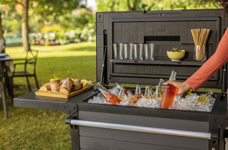 Štýlový záhradný vozík BEVARCOO BAR v sivom prevedení na chladenie nápojov. Tento praktický záhradný BEVARCOO BAR je skvelý pre každý vonkajší priestor, či už je to terasa, záhrada alebo balkón. S chladiacou skrinkou máte možnosť skladovať nápoje. Výklopné police na oboch stranách vozíka sú ideálne pre dodatočný úložný priestor. Záhradný vozík má otočné kolieska, ktorými sa jednoducho vozík posúva, avšak pri podávaní je potrebné vozík zaistiť. Už nikdy nebudete musieť kompromitovať teplotu svojich obľúbených nápojov a užite si letné párty s priateľmi a rodinou s dokonale vychladenými nápojmi.