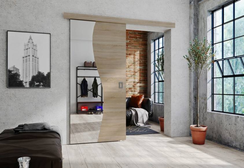 Posuvné dvere FALA | 90 cm sú vyrobené z kvalitného a praktického materiálu a sú ideálnou voľbou pre moderné domácnosti. Zrkadlo je nalepené už na dverách. Pojazdový systém je súčasťou balenia. Montáž je jednoduchá. Údržba je nenáročná, stačí ju utrieť handričkou alebo použiť čistiaci prostriedok vhodný na drevo.