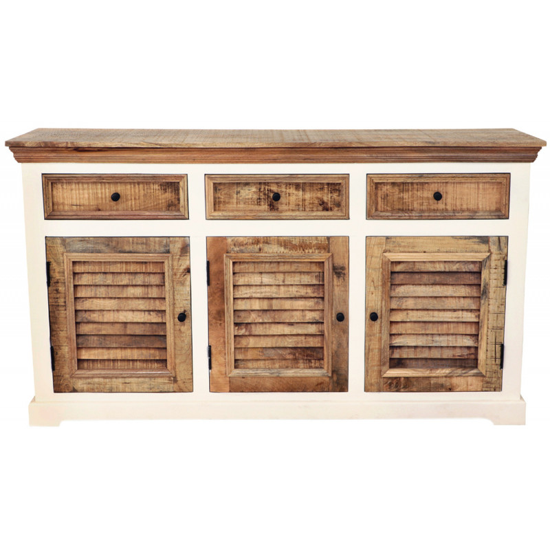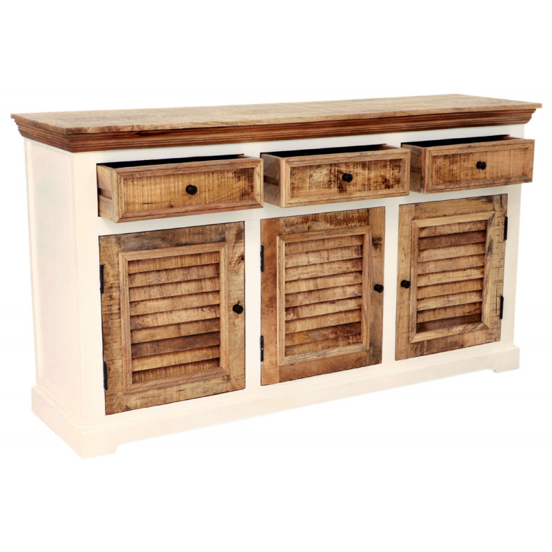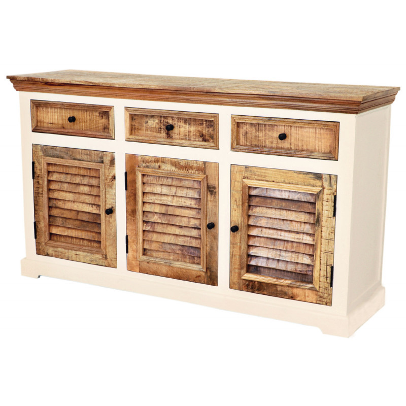 Komoda z masívu Agni je vyrobená z kvalitného masivného mangového dreva vo vidieckom štýle.Komoda má troje dvierka a tri zásuvky s úložným priestorom. Vyrobená z masívu mango. Komody z masívu, ktoré máme skladom, si môžete pozrieť v našom showroome. Indický koloniálny nábytok mango masív.