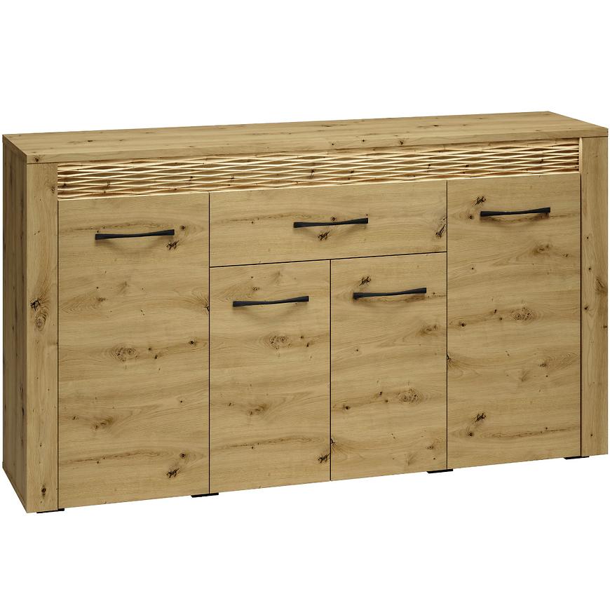 Modernosť inšpirovaná prírodou, teda starostlivo navrhnutá kolekcia ARTIS. Prirodzený vzor dreva, krásne zdobenie a jasné uzly zdôrazňujú charakter nábytku. V kombinácii s vyváženým a jednoduchým štýlom vytvárajú originálne duo, ktoré zmení každý interiér. Čierny kovový úchyt dokonale kontrastuje s dekorom teplého dubu, osvetlená, dekoratívna drážka dodá vášmu interiéru žiaru a jedinečnú atmosféru.